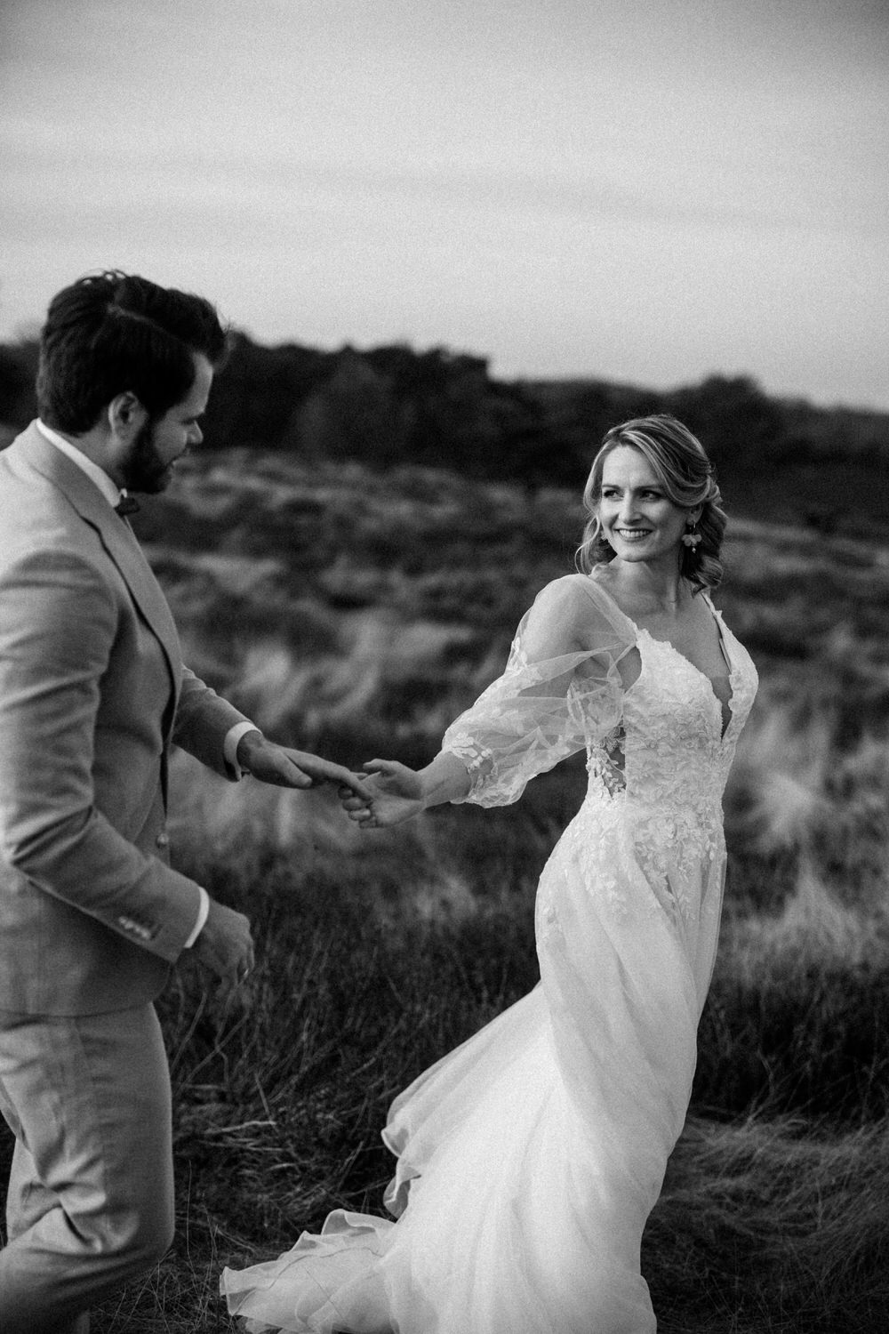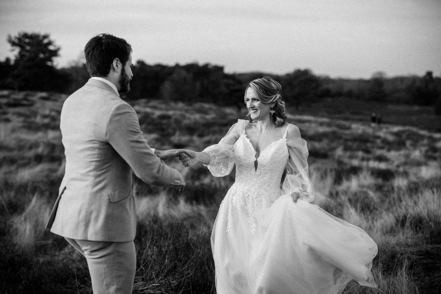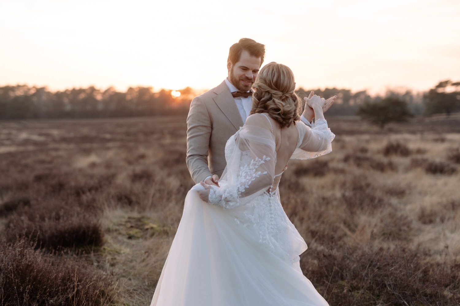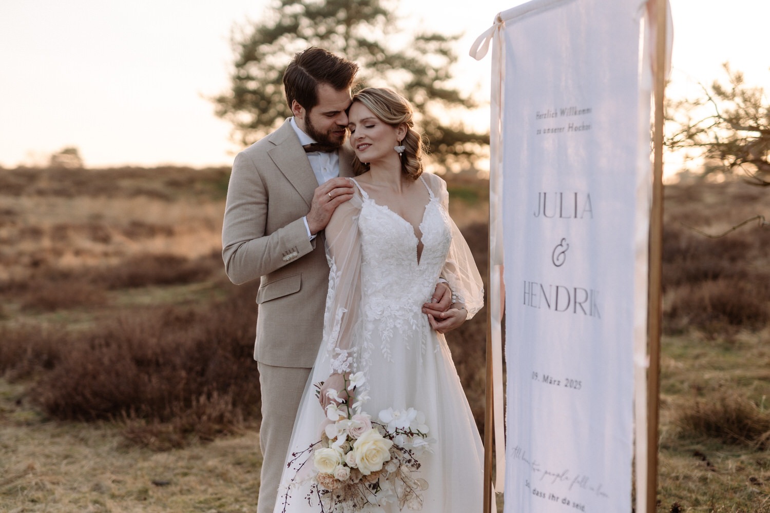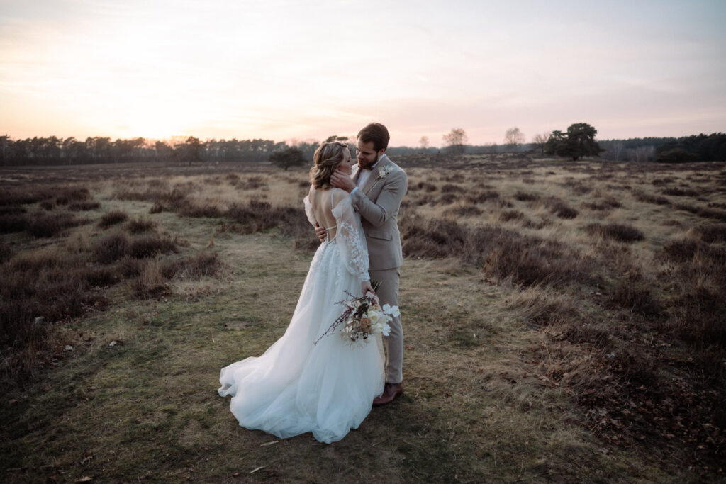 💡 Tipp für eure Hochzeitsfotos in Recklinghausen: Die Heide sieht besonders im Spätsommer magisch aus, wenn sie in satten Lila- und Rosatönen blüht. Wer ein natürliches und ungestelltes Shooting möchte, sollte die Abendstunden nutzen. Das sanfte Licht sorgt für eine besonders warme und romantische Stimmung.